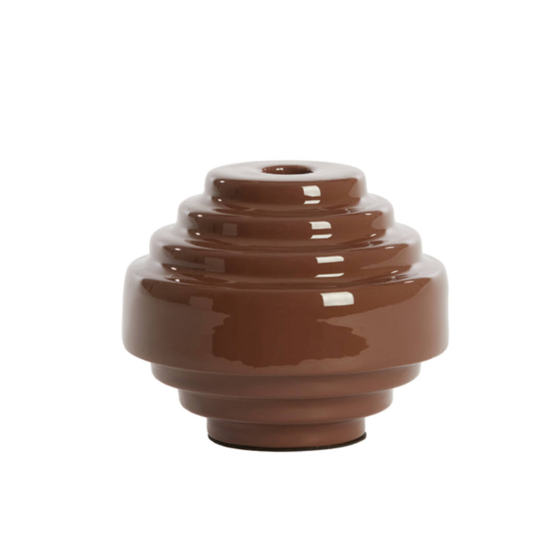 De WANHATI kandelaar van Studio Ideá brengt direct warmte en sfeer in je interieur. Met zijn compacte formaat en glanzende donkerbruine afwerking is deze kandelaar ideaal voor op een salontafel, dressoir of gedekte eettafel. Het elegante design geeft elke ruimte een stijlvolle, gezellige uitstraling.