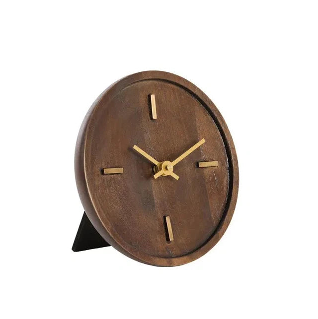Breng warmte in huis met de VETI tafelklok Ø15 cm. Gemaakt van mango hout met subtiele gouden accenten is dit klokje een stijlvol detail voor elke ruimte. Perfect voor in een vakkenkast, op een dressoir of als onderdeel van een leuke set met vazen. Tijdloos, compact en altijd mooi in beeld.