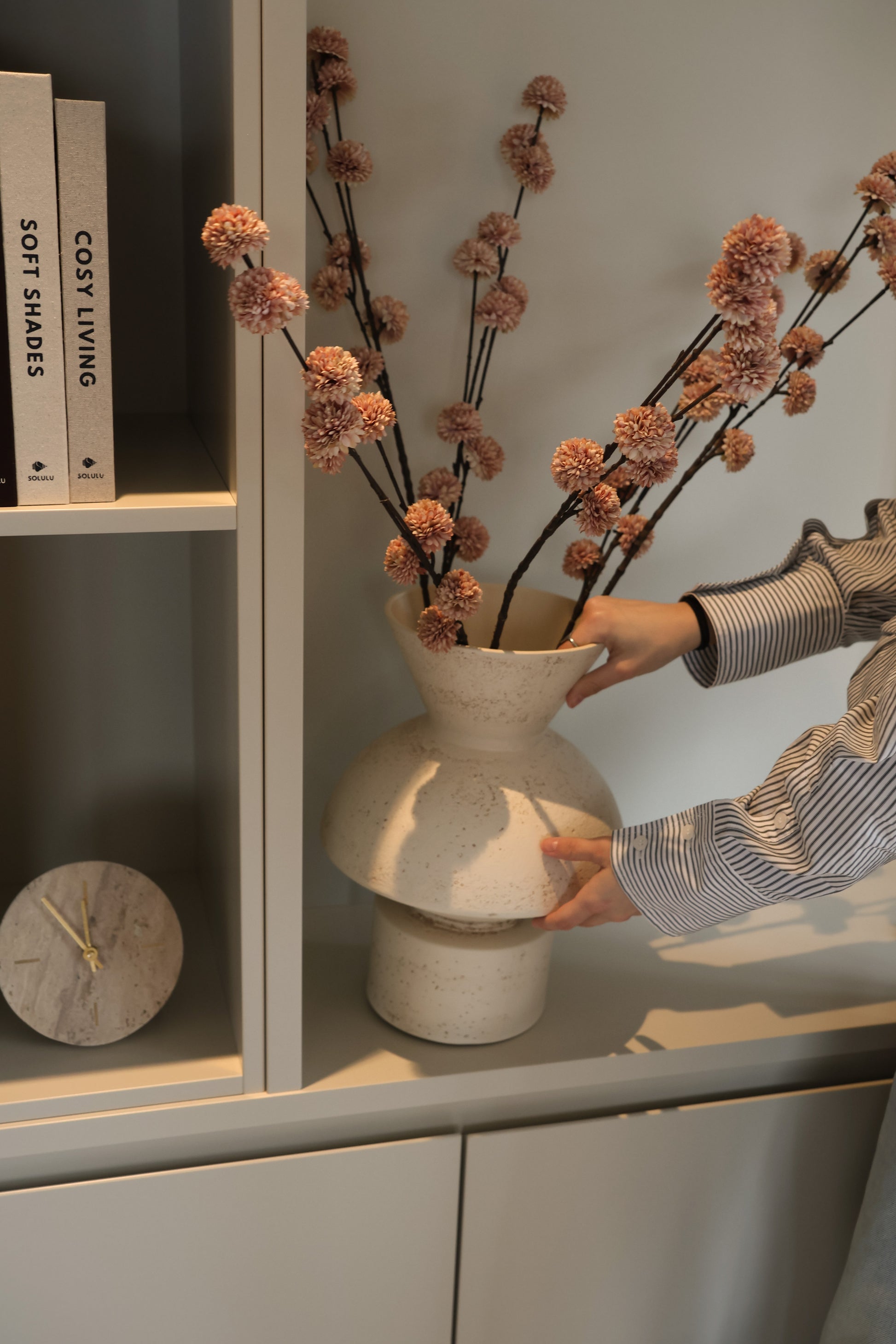 Deze decoratieve kunsttak is ideaal om los in een vaas te stylen of te combineren met andere kunstbloemen en -takken voor een luchtig en speels geheel. Dankzij het buigzame ijzerdraad in de steel kun je de tak eenvoudig naar wens vormen, zowel in een kleine als grotere vaas. Onderhoudsvrij en blijvend mooi – elk seizoen opnieuw.