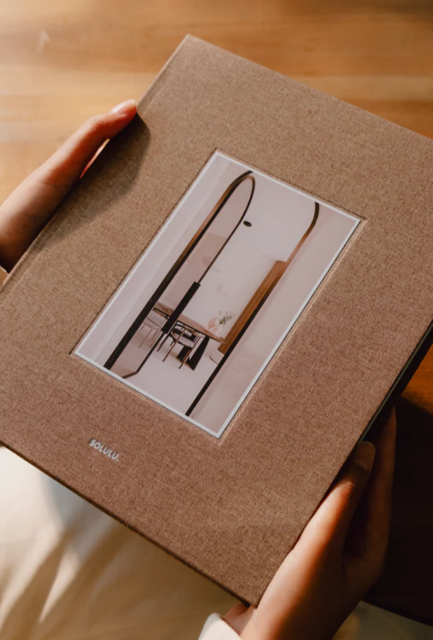 Het Calm Living opbergboek van Solulu is een stijlvol en functioneel opbergboek met een warme bruine linnen kaft en sfeervolle cover-foto dat eruitziet als een echt koffietafelboek. Achter de elegante omslag schuilt een verborgen opbergruimte voor alledaagse essentials zoals afstandsbedieningen, pennen, waxinelichtjes of notitieboekjes – zo blijft je interieur altijd opgeruimd en gestyled. Gemaakt van stevig gerecycled karton met een 100% linnen kaft en een praktische magnetische sluiting, past dit opbergboek perfect bij moderne en natuurlijke woonstijlen zoals Japandi en Scandinavisch.