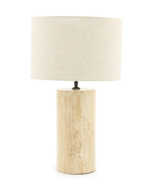 Deze travertin tafellamp met linnen kap is een stijlvolle toevoeging aan elk interieur. De natuurlijke travertinen voet geeft de lamp een luxe en tijdloze uitstraling, terwijl de linnen kap zorgt voor warm en sfeervol licht. Door het gebruik van natuursteen is elke lamp uniek.