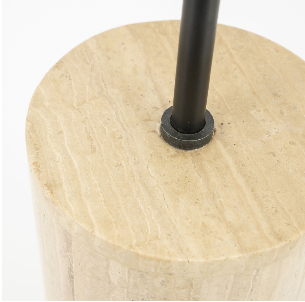Deze vloerlamp met travertinen voet en linnen kap is een stijlvolle blikvanger in elk interieur. De voet is vervaardigd uit hoogwaardig travertin, een natuurlijk steensoort met unieke kleurnuances die elke lamp een luxe en karaktervolle uitstraling geeft. De linnen kap zorgt voor een warm en sfeervol licht.